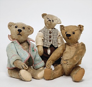 3 Bären, Freunde, Steiff u. andere, 20 – 26 cm, Schuhknopfaugen, lange Arme, Buckel, abgeliebt, ausdrucksstark