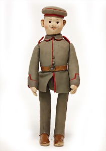 Soldat, 27 cm, 1. Weltkrieg, ca. 1912, mit Knopf, Reste weißer Fahne, bis auf kl. Stellen guter Zust.