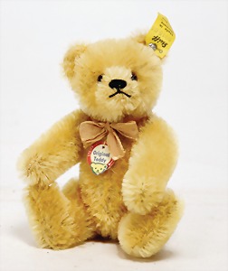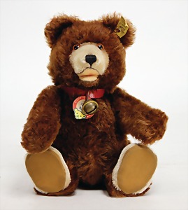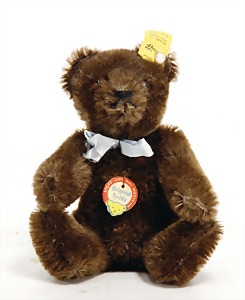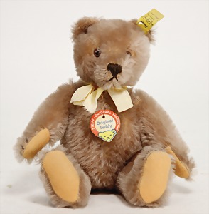 Orig.-Teddy, zimt, kompl., Nr. 5325.02, 25 cm, ein wenig eingestaubt, minim. Mohairverlust um das rechte Auge, sonst sehr guter Zust.