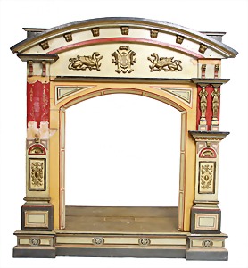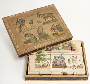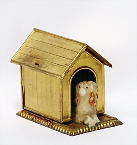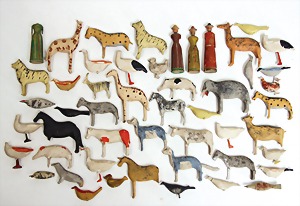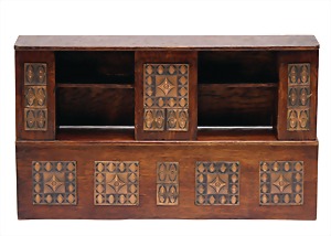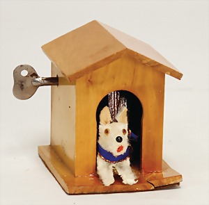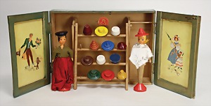 Hutladen, Holz, ca. 1940, mit 2 Figuren, 36,5 cm breit, 26,5 cm hoch