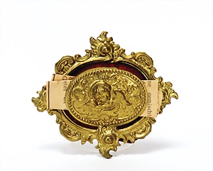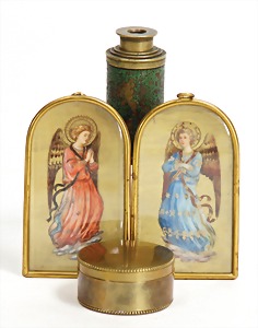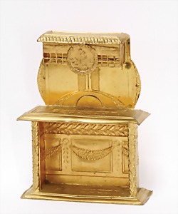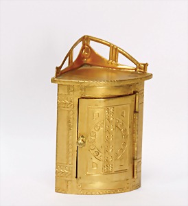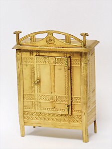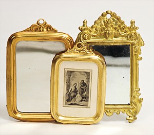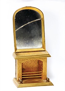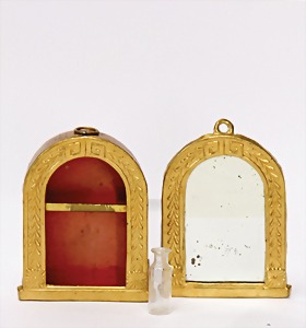 Gold/Blech, 2 Teile, kl. Regal, 6,5 cm, (Hausapotheke), hinten Pappe, 1 Spiegel, 6,5 cm