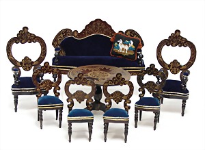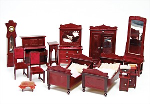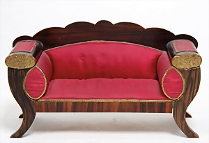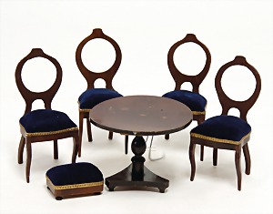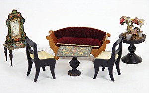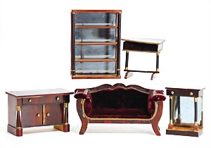 Biedermeier-Möbel, Sofa, 15,5 cm, Schrank, Höhe 15 cm, Regal hinten verspiegelt, Kommode, 2 Stühle