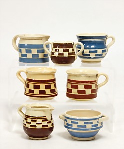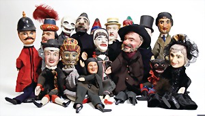 7 Teile, Puppenstuben-Puppen, Haushälterin, 15 cm, Mann mit Schnurrbart, 14 cm, Mann mit Schnurrbart, stirnrunzelnd, 12,5 cm, meist guter Zust., 1 Mann Kopf lose, ohne Kleidung