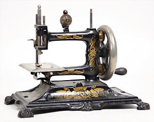 Kinder-Nähmaschine, schwere Gussausführung, 29 cm, Dekor in gutem Zust., mit Abdeckhaube
