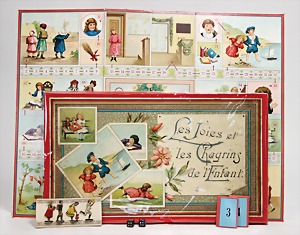 3-tlg. Puppenstube, ca. 1870, 1,45 m breit, 36 cm hoch, 38 cm tief, zusammensteckbar, (Reisestube), 5 Fenster, 2 Durchgangstüren, Orig.-Tapete an Wand u. Boden, Orig.-Außenbemalung, Orig.-Vorhangblenden mit Vorhängen, möbliert mit prächtigen Rock & Graner Möbeln, weißer Salon, gepolsterte Möbel, Sofa, Länge 16,5 cm, Spiegel, Höhe 22 cm, Schrank, Kommode, Ofen, Sitzgruppe dunkel, gr. Schrank, Kommode, Schlafzimmer, Kleiderschrank, Bett, Nachttisch, Wachtisch, Kinderwiege, 2 kl. Biedermeier Puppen, 1 Puppe Fuß bestoßen, Bilder, Zinnteile, Zubehör, Stube wurde direkt von der Familie eingeliefert, mit alter Spanschachtel f. das Mobiliar, Maria Bauer Mühlacker