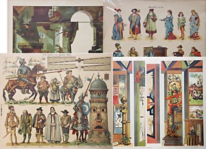 3 frühe Puppenstuben-Bilder, 6 cm hoch, 5 cm breit