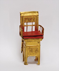 Gold/Blech, Sitzgruppe, mit 2 Tischen, Bank, 9 cm, 4 Armsessel, roter Samtbezug, ausgefallen