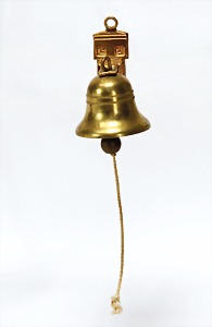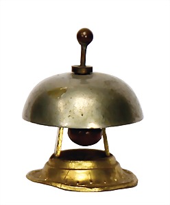Gold/Blech, Tischglocke, Höhe 3,5 cm, guter Zust., ausgefallen