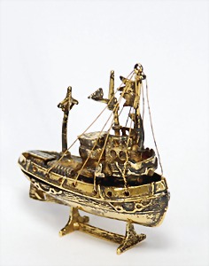 schöne filigrane Silberarbeit, Fischkutter, 5 cm, Dekoration f. eine herrschaftl. Puppenstube