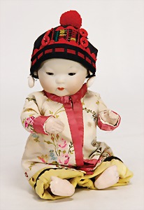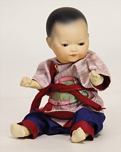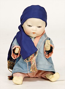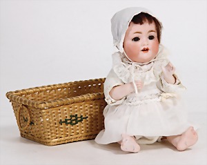 353/0K, Orientale, 23 cm, Kurbelkopf, braune Schlafaugen, geschl. Mund, Sitzbabykörper, Transportrisiko f. Augenmechanismus beachten