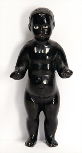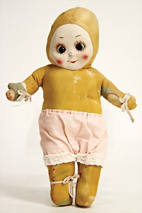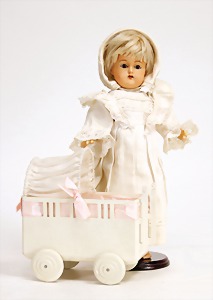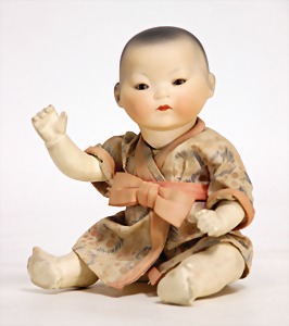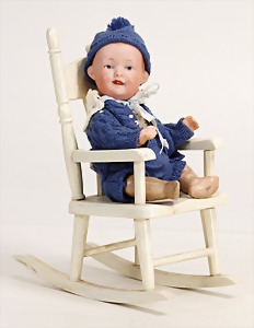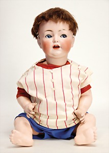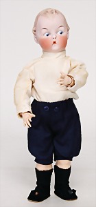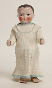 Badepuppe, Frozen Charly, glasiertes Porzellan, 31 cm, dunkle gemalte Haare, gemalte Augen