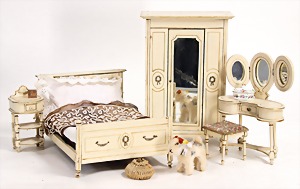 Puppen-Sitzgruppe, Bank, 40 cm breit, Tisch, 2 Stühle, ca. 1910, schöne Dekoration für Puppen