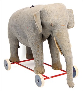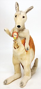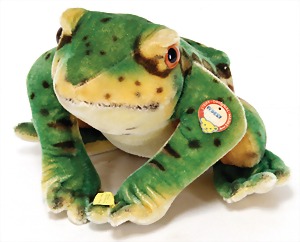 "Froggy" Frosch, 50er Jahre, mit Knopf, Schild u. Fahne, Brustschild wurde bemalt, Nr. 3328,00, unberührter Zust., gr. Größe, 28 cm lang, 18 cm hoch