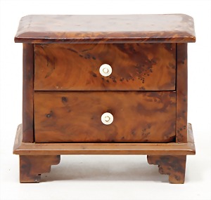 small model chest of drawers, walnut tree, solidly, burr wood, width: 13.5 cm, height: 12.5 cm, 2 drawer handles are made of ivory