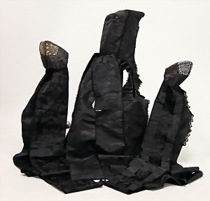 3 traditional hoods, 2 x fine embroidered, with glass beads, for middle sized dolls up to larger dolls