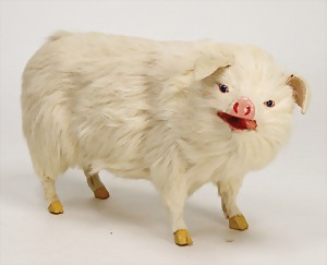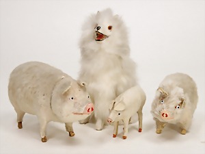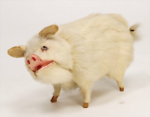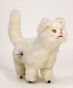 machine, France, dancing dog with cylinder, 25 cm, mass, pelt covered, glass eyes, clock mechanism is intact
