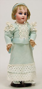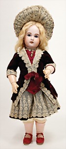 doll with bisque head, 979, 22 cm, the brown glass eyes were afterwards fix inset, opened mouth, upper teeth, dimple at chin, mohair wig, jointed body, with fix wrists