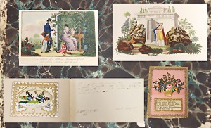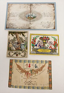 4 congratulation cards, marriage, 1816 - 1851, handcoloured