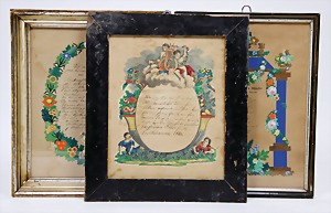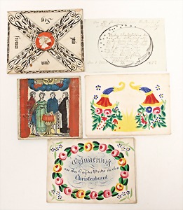 5 pieces, baptismal letters, 1820 - 1860, mostly handcoloured