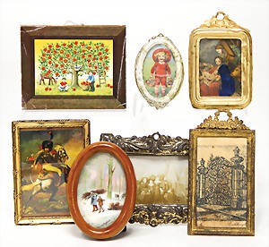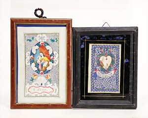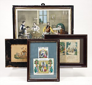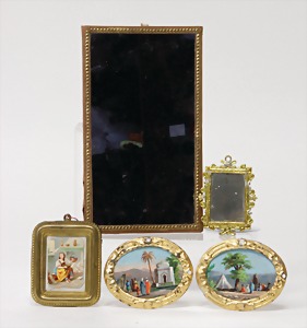 4 pieces framed, Biedermeier, paper work, 11.5 x 9.5 cm, 12.5 x 9, 9 x 11,4, good condition, 4.2 x 5 cm, small patches with flaws