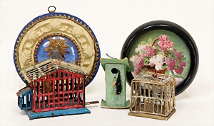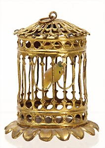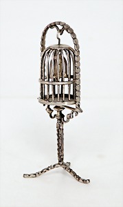 dollhouse birdcage, probably silver, 9.5 cm, for a small stately room