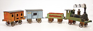 5 pieces, early train congratulation cards, 9 - 11.5 cm tall