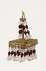 dollhouse ceiling lamp, sheet brass, mounted glass beads, 9.5 cm