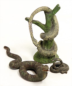 3 Teile Lineol, Würgeschlange am Baum sowie Brillenschlange Elastolin, Masse, 2x Zust. 2, Würgeschlange Mittelteil etwas ausgebessert