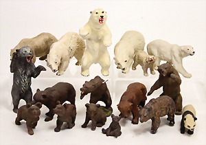 Elastolin, Lineol u.a, Eisbären, Braunbären u. 1 Koala, 1 Braunbär vom Pfeil getroffen, meist Zust. 2