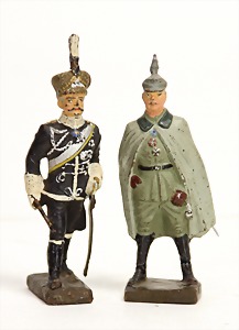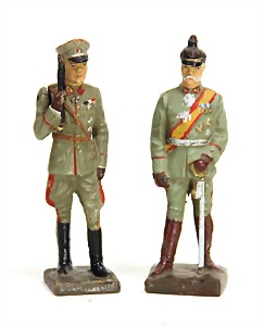 2 Teile Lineol, 7,5 cm, Masse, 2. Weltkrieg, Feldmarshall August von Mackensen, in Husarenuniform, Zust. 3, Erich von Ludendorf, Zust. 2-3