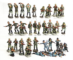 Konv. Soldaten, 2. Weltkrieg, Lineol, gem. F.F., Elastolin, marschierend u. kämpfend, mit kl. Fehlstellen