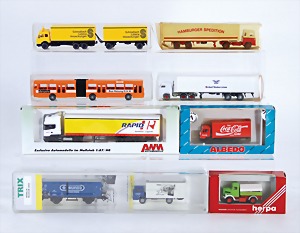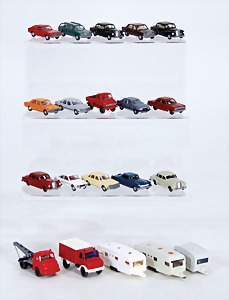 schönes Konv. Modellautos, meist WIKING, LKW u. PKW, 60er – 90er Jahre, ca. 40 Teile, teils guter Zust., teils bespielt, mit Fehlern