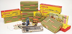 Fundkiste, Trix Express, 260, 200, kl. Rangiertenderlok, einige Güter- u. Personenwagen, Gleismaterial, Transformator, meist im Orig.-Kart., meist sehr guter Zust., einige Güterwagen ohne Kart.