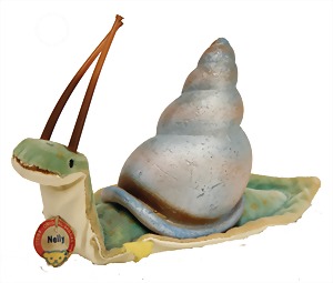 Nelly, Schnecke, Knopf, Fahne verschlissen, mit Schild, leicht bespielt