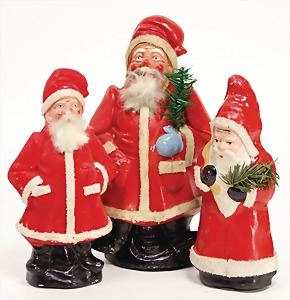 3x Nikolaus, Pappmaché/Masse, 24 cm, 25 cm, 28 cm