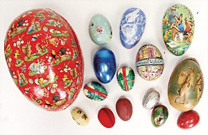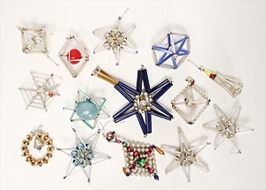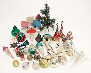 schönes Konv. Weihnachtsschmuck, 8 Kugeln in versch. Ausformungen, kl. Papphäuschen u. a., bitte besichtigen