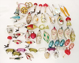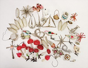 schönes Konv. Weihnachtsschmuck, Glasanhänger, versch. Ausformungen, Glocken, Pilze, Tannenzapfen, darunter auch Gablonzer Schmuck, Spinnennetz, Hummer u.a., bitte besichtigen