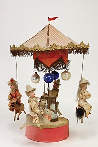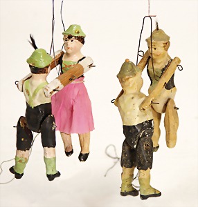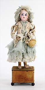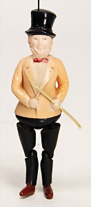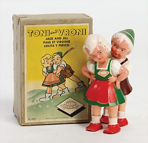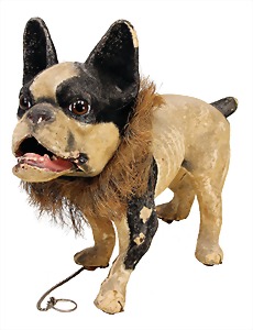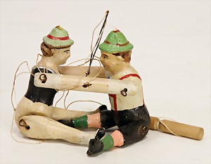 Waldili, auf Excenterräder, 28 cm, 30er Jahre, mit Knopf, Reste roter Fahne, guter Zust.