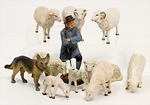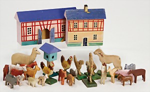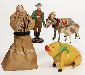 18 Teile Elastolin u. Lineol, Masse, Strauß, Känguru, Giraffe, meist Zust. 2, 1 paar Figuren, meist Zust. 3