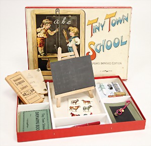 2 Steinbaukästen, 1x Nr. 7, 2-lagig mit Metallteilen, mit Anleitung, wohl bis auf wenige Steine kompl., auf Vollständigkeit nicht geprüft, Orig.-Holzkiste mit bunt lithogr. Deckbild u. Anker Richters Steinbaukasten, Nr. 8, ohne Eisenteile, 2-lagig wohl bis auf wenige Steine kompl., Orig.-Holzkiste, bunt lithogr. Deckbild