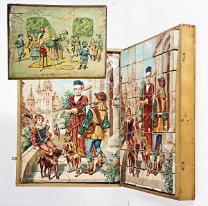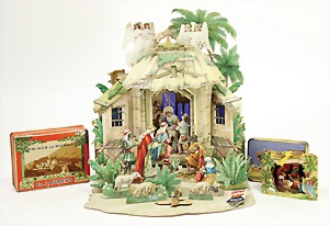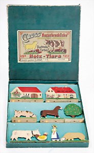 3 Steinbaukästen, 1x Nr. 8, 2-lagig, Orig.-Holzkiste, mit bunt lithogr. Deckbild, mit Anleitungsheft, auf Vollständigkeit nicht geprüft u. Nr. 13a, Herzberg mit Metallteilen, Nr. 12a, Mehldorf, Orig.-Holzkiste mit bunt lithogr. Deckbild, ohne Anleitung, Frontschilder an der Holzkiste ergänzt, auf Vollständigkeit nicht überprüft