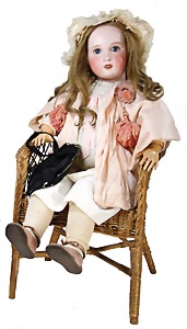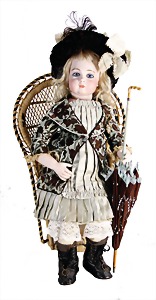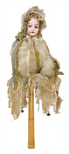 Kinderschirm, Griff mit Porzellan-Kopf, 56 cm, schöne Dekoration für 1 gr. Puppe