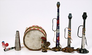 3 Teile Masse, 2. Weltkrieg, 7 cm u. 7,5 cm, Elastolin, Paukenschläger, Zust. 2, dazu 2 Reiter ungem., insgesamt Zust. 2-3
