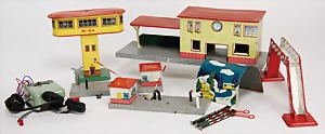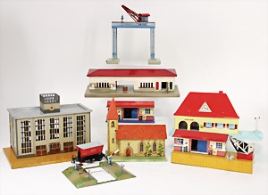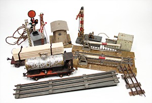 Fundkiste, SCHUCO Varianto, Gleise, Kreuzung, Anhänger 3032, Drehscheibe, dazu einige Prospekte u. Betriebsanleitungen, Orig.-Kart., schönes Konv., bitte besichtigen