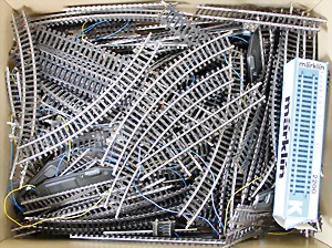 Fundkiste, Modelleisenbahn, gr. Konv. Gleismaterial, MÄRKLIN , gerade, gebogen, Kreuzungen, alles neuwertig, Orig.-Kart., Modelle, Orig.-verpackt