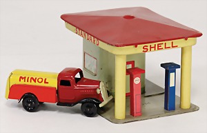 Tankwagen, Frankreich, schwere Blechausführung, 36 cm, Liquidef Inflammablef 1ére Catégorie Védé, Uhrwerk intakt, Elektr. beleuchtete Frontscheinwerfer, leicht bespielt gut