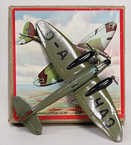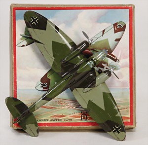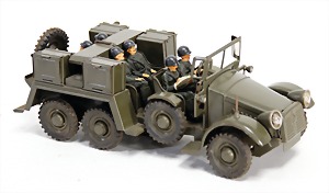 Kraftwagen, 3-achsig, 24,5 cm, Natooliv, 6-Mann Besatzung, 2 Holzbrückenteile, Uhrwerk intakt, sehr guter Zust., 2 Gewehre fehlen