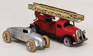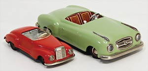2 Teile Blech, JNF Condor, Cabriolet, Blech, Uhrwerk intakt, Frontscheibe fehlt, bespielt, MS Cabriolet, 13,5 cm, leicht bespielt, Antrieb defekt