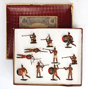 feine Zinn- Kompositionsfiguren, Indianer, plastisch, 5 cm, im Orig.-Kart.