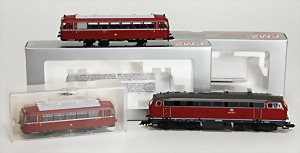 H0, FMZ Technik, 2 Lokomotiven, V218, 64938, Schienenbus, Motorwagen mit Beiwagen, 64405, 4406, neuwertig, Orig.-Kart.
